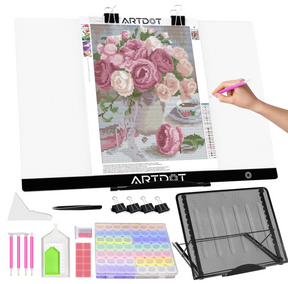 La planche lumineuse LED format A2 est idéale pour les projets de peinture diamant de taille moyenne à grande. Elle offre un éclairage uniforme qui facilite la lecture des symboles et améliore la précision, tout en réduisant la fatigue visuelle. Fine, légère et alimentée par USB, elle convient parfaitement aux longues sessions créatives.